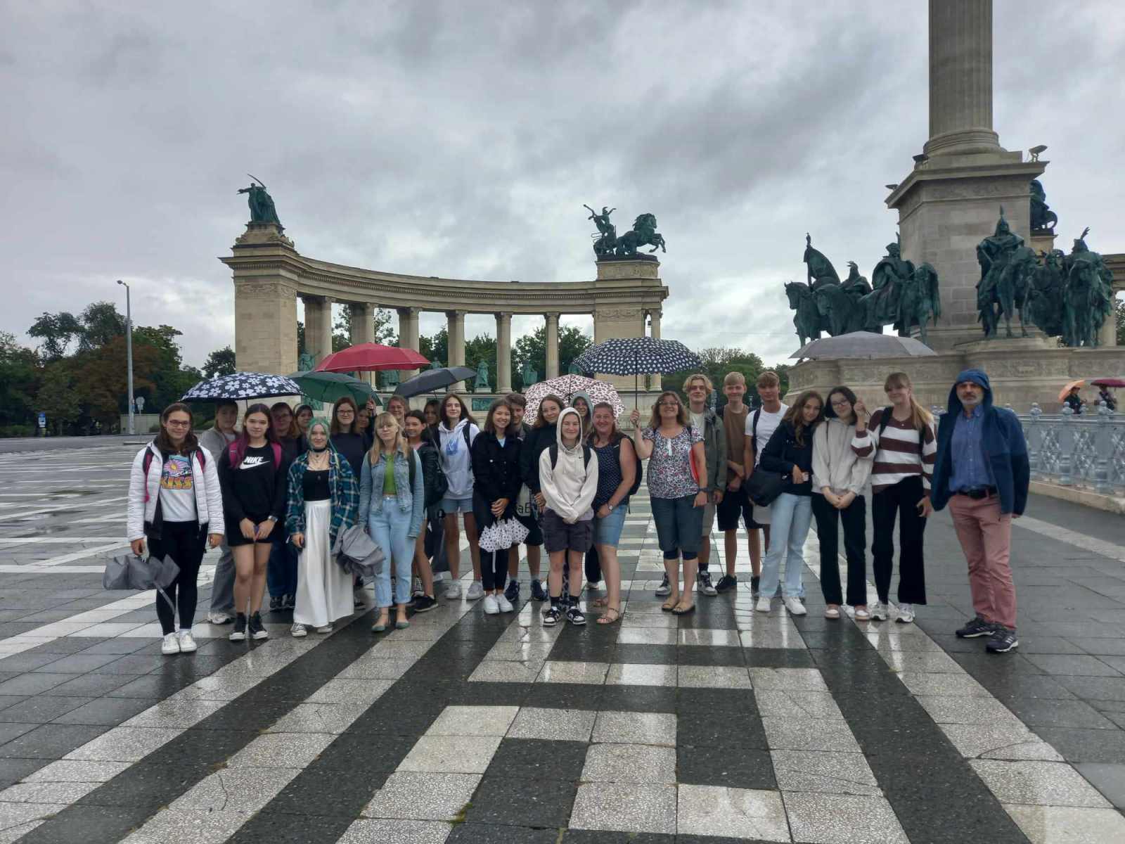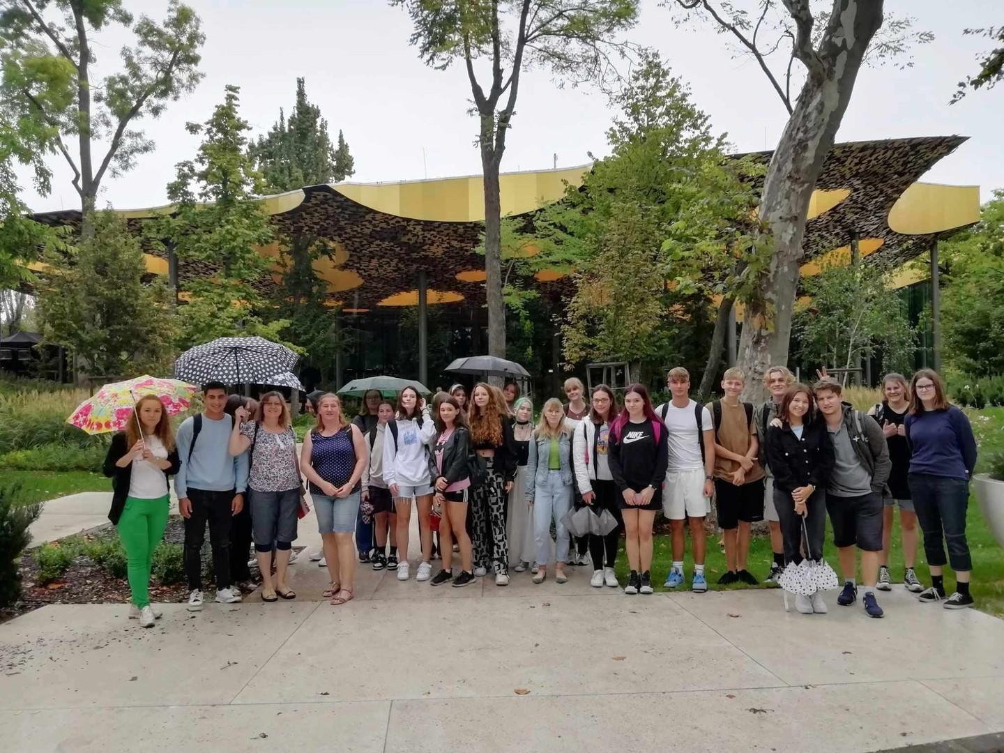 Nach der Abfahrt um 07:00 Uhr aus Hajdúböszörmény erreichten wir nach 2,5 Stunden Fahrt den Heldenplatz. Nach ein paar Fotos machten wir uns auf den Weg. Dabei spazierten wir durch den Park Városliget und besichtigen im Anschluss den Musikpavillon im Herzen des Parks. Angekommen, fanden wir uns in einem Innenraum mit einzigartiger Deckengestaltung wieder. Vor allem von den klingenden Teppichen waren wir alles sehr fasziniert.