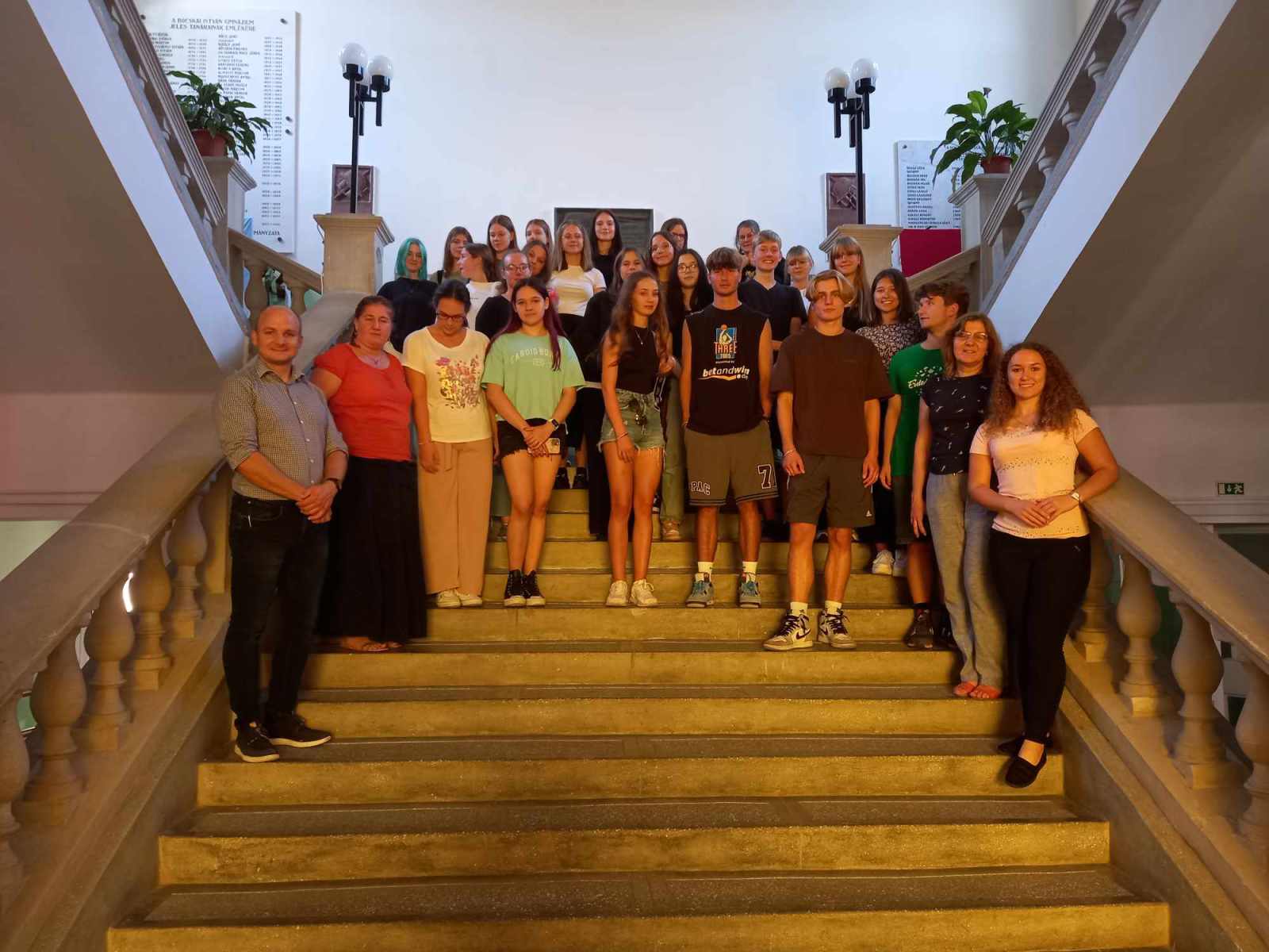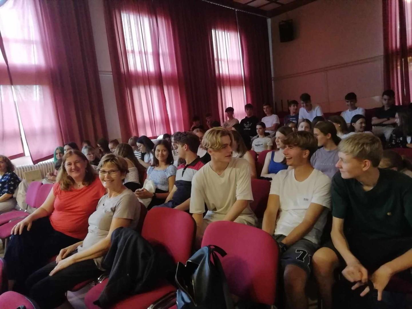 Um 8 Uhr trafen wir uns in der Schule und fingen an, weiter an den Projekten zu arbeiten. Wir probten nochmal das Lied Hajnalozó (was auf Deutsch so viel bedeutet wie Morgenlied) und studierten unsere letzten Tanzschritte ein. Um 12:30 Uhr hatten wir eine einstündige Mittagspause, bevor es um 13:30 Uhr mit der Generalprobe vor den Schülern der neunten Klasse weiterging. Erst stellten wir unsere Mini-Präsentationen über Franz Liszt vor, danach sangen wir das Lied und zum Schluss führte jede Gruppe ihren Tanz vor. Die Schüler sahen uns mit freudigen Gesichtern zu und ihr Applaus gab uns Mut, auch am Abend vor den Eltern zu performen. Nachdem sich jeder am Nachmittag bei seiner Gastfamilie aufhielt, war es dann um 17:30 Uhr so weit, wieder in der Schule aufzutauchen. Es dauerte nicht lange bis die Vorstellung losging. Wie bei der Generalprobe machte es wieder sehr viel Spaß, unsere Ergebnisse zu präsentieren. Den Familien bereitete es ebenfalls viel Freude dabei zuzugucken. Mit einem großen Applaus ging es dann ans Essen. Und man muss sagen, nicht nur wir Schüler hatten abgeliefert, auch die Eltern zauberten sehr leckeres ungarisches Essen! Nach dem Abendbrot verbrachten wir noch einen sehr schönen und unterhaltsamen Abend zusammen. Mit sportlichen Aktivitäten, wie Volleyball oder Basketball, mit Musik oder einfach mit netten Unterhaltungen verging die Zeit ziemlich schnell.