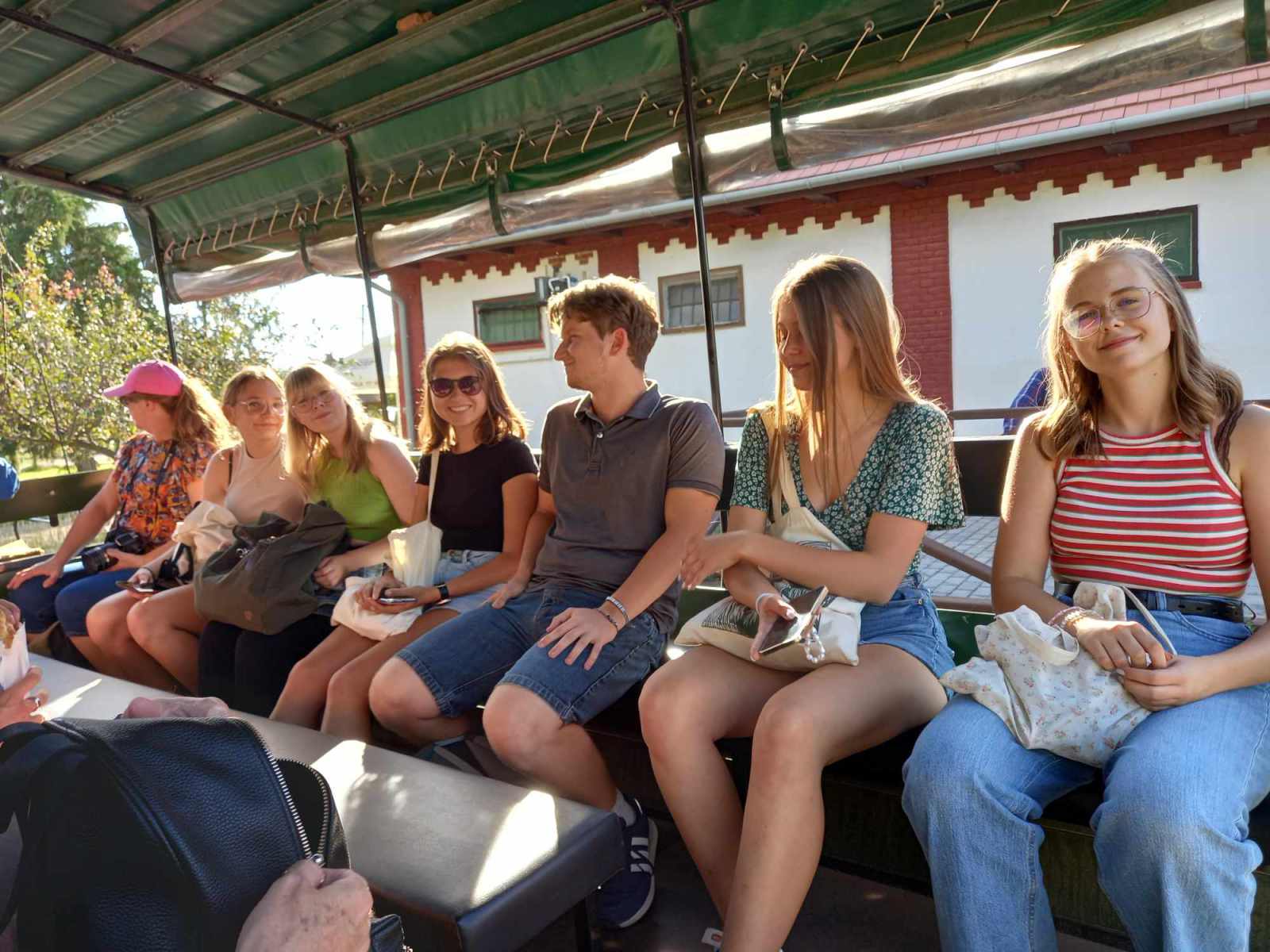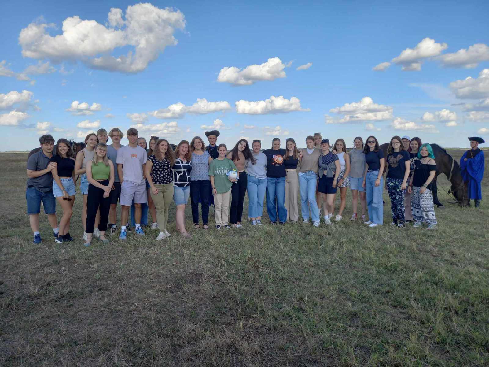 Am Nachmittag haben wir dann einen Ausflug auf die Puszta Hortobágy gemacht. Die Stimmung war gut als wir an einem wunderschönen Bauernhof ankamen. Vom Bus stiegen wir in die Pferdekutsche um und schon sind ging es los. Es war teilweise sehr holprig, was das Ganze aber noch lustiger machte. Wir durften uns verschiedene Pferdeshows ansehen und neue Tierarten kennenlernen. Das Wetter war super und alle waren gut gelaunt.