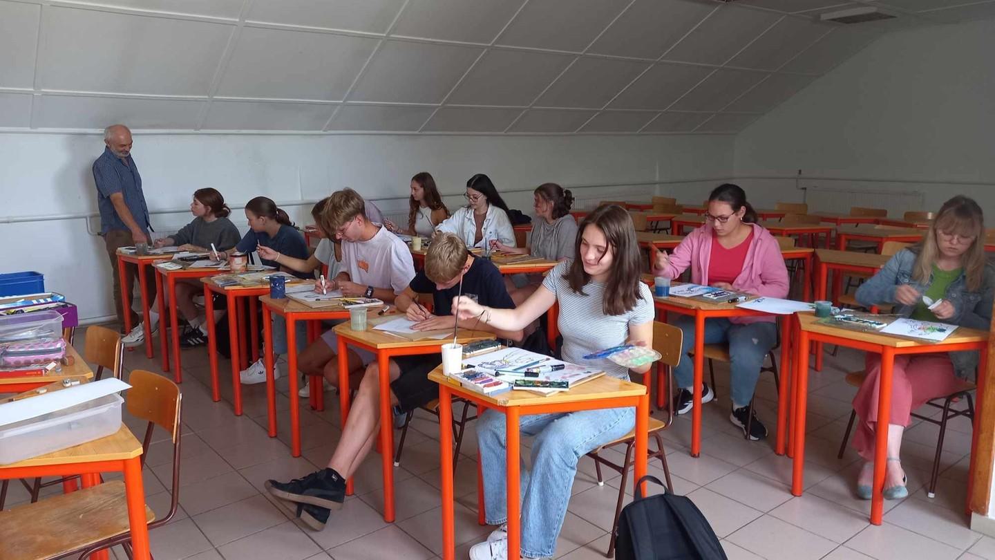 Heute haben wir uns gegen neun Uhr in der Schule getroffen und wurden in zwei Grppen aufgeteilt. Die erste Gruppe hatte Kunst und durften ein Bild von Franz Liszt ganz nach Ihren eigenen Ideen gestalten. Die andere Gruppe hat in der Zeit ein ungarisches Lied gelernt. Nach ca. zwei Stunden wurde dann getauscht.